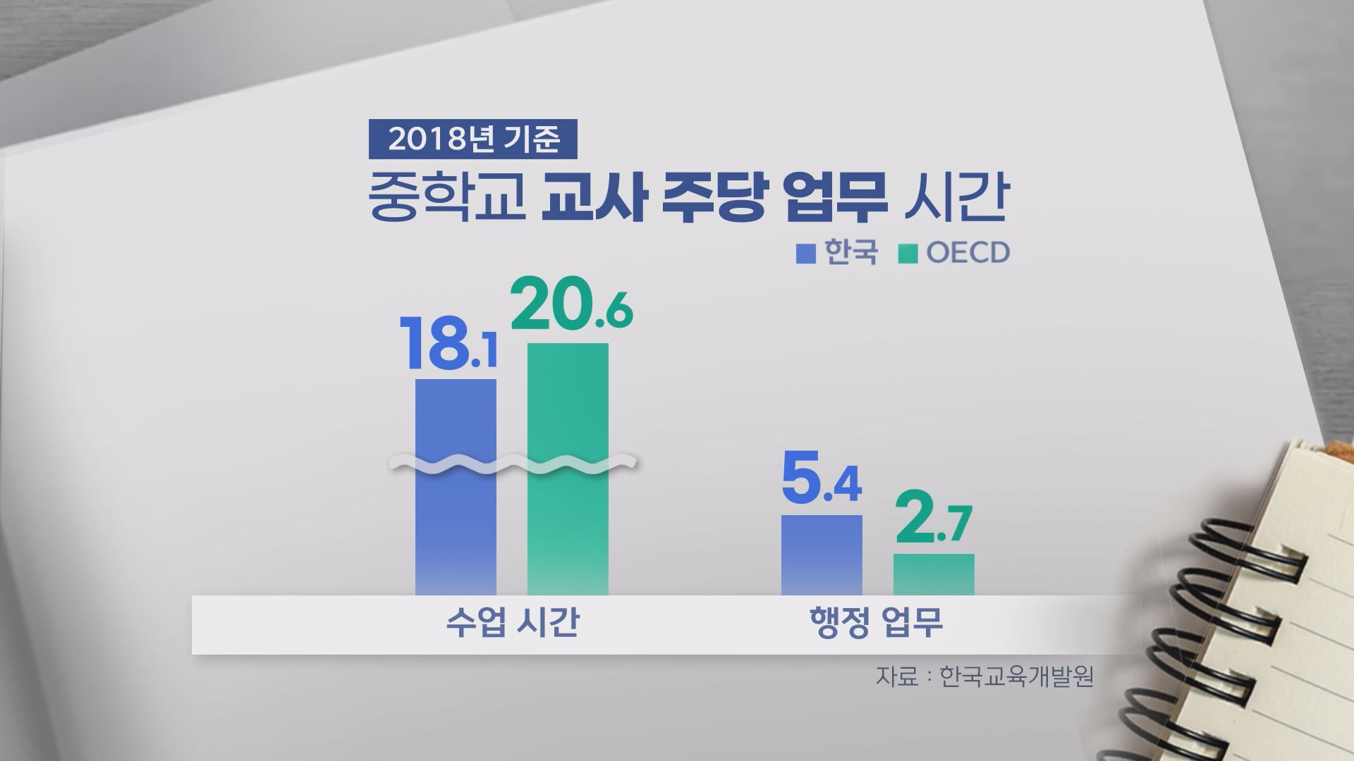 OECD 평균이 2.7시간이니까 정확하게 행정 관련 일이 두 배 더 많은 셈입니다.