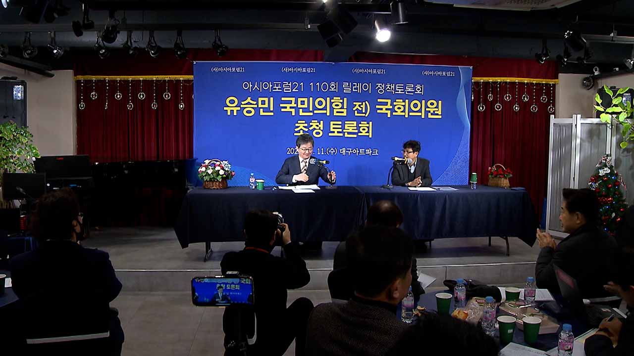 국민의힘 당 대표 후보 중 각종 여론 조사에서 선두권에 자리 잡은 유승민 전 의원이 대구의 한 정책토론회 포럼에 참석했습니다.