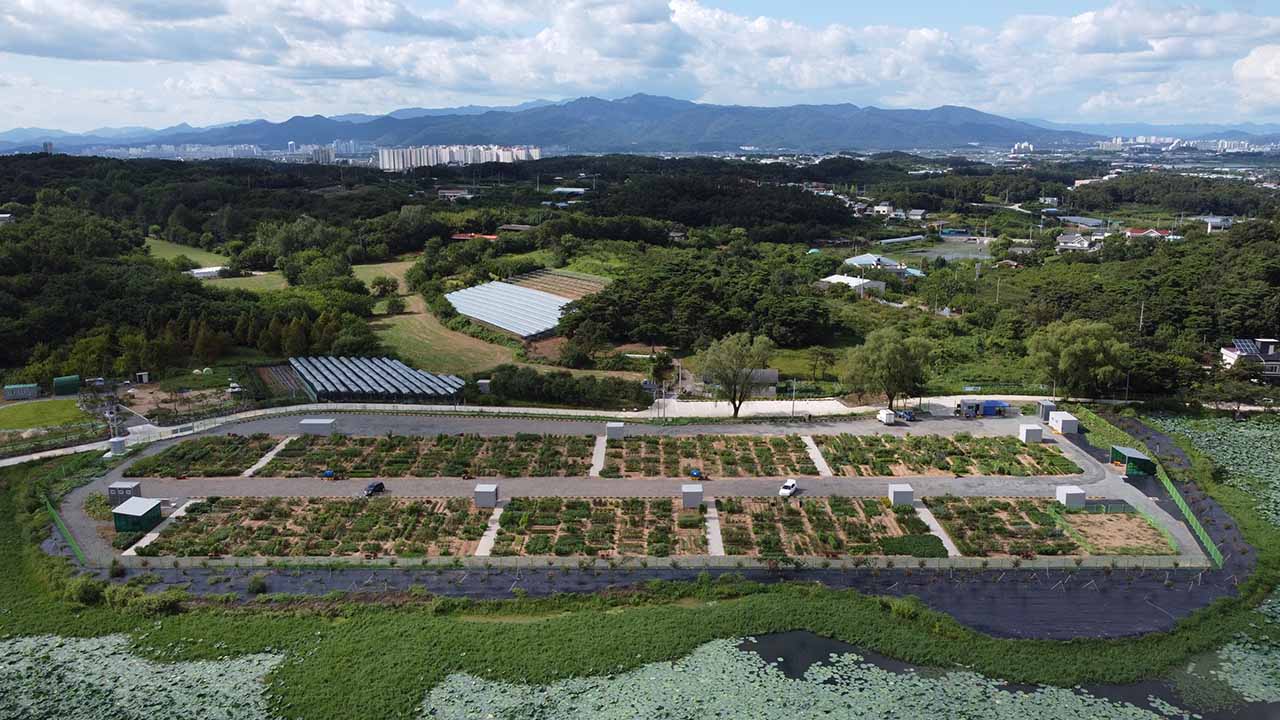 경산시가 신천동에 조성한 공영농장은 체험형 텃밭 5,600㎡ 규모로 주차장과 쉼터, 화장실, 농자재 창고 등을 갖추고 있습니다.