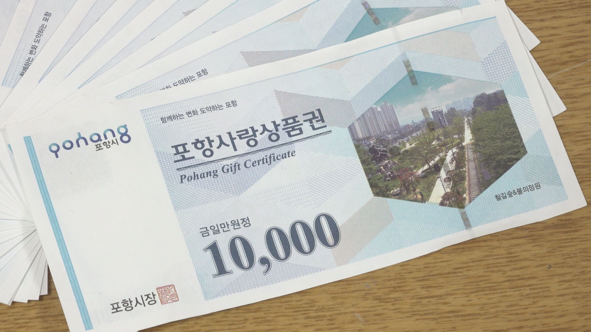 카드형 포항사랑상품권 200억 원은 판매 후 6시간 만에 예산이 소진됐고, 지류형 상품권 400억 원도 나흘 만에 모두 완판됐습니다.