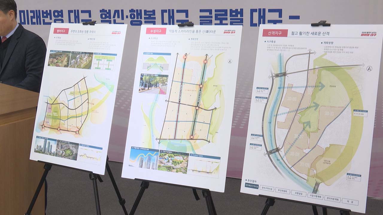 구체적으로 살펴보면 '대명지구'는 앞산에서 두류공원으로 연결되는 녹지를 확보하고, 군사시설 후적지와 연계한 개발 방안을 마련합니다.