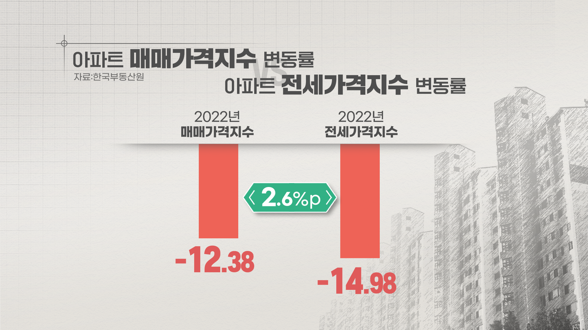 하지만 지금처럼 고금리 시기에는 오히려 반대로 역 지렛대 효과로 작용하면서 전셋값 하락세를 가속하고 있습니다.