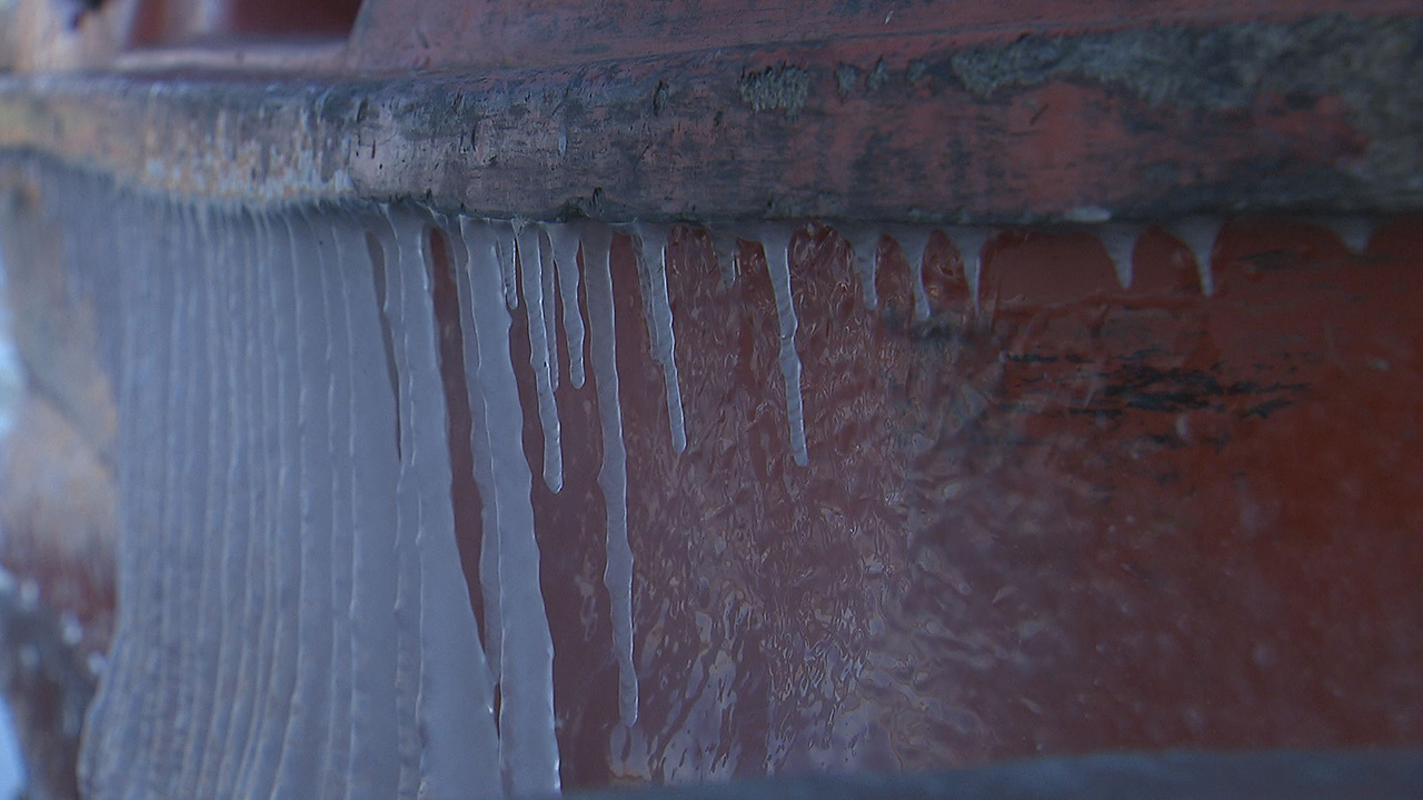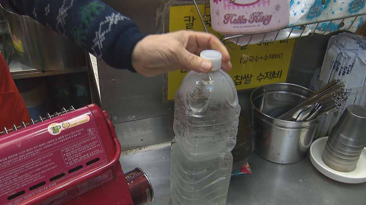 "다 얼었어요, 지금. 물이 없잖아요, 지금… 그러니까 손님들 먹는 물이 걱정이지. 지금 따뜻한 물은 조금 나와요, 따뜻한 물은."