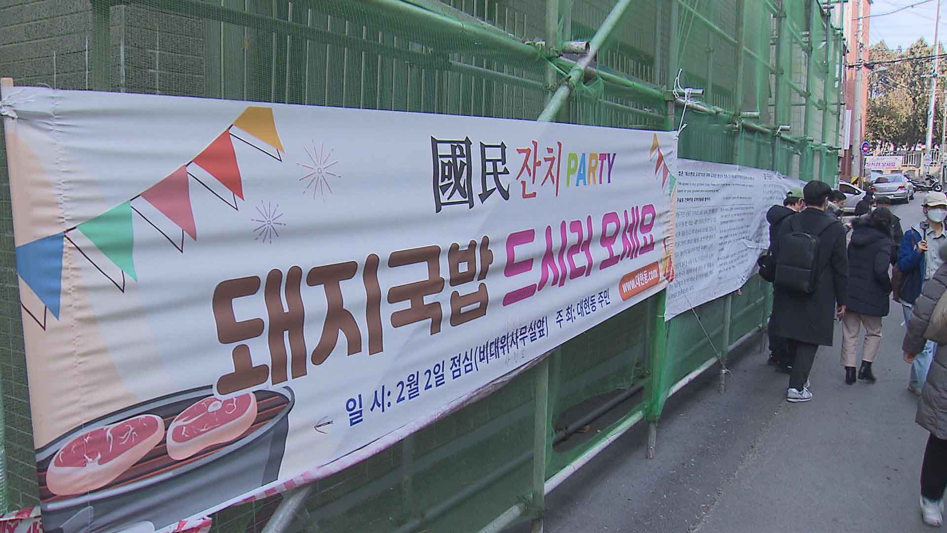 대구 북구 주택가 골목에 '국민 잔치'란 이름으로 행사가 2월 2일 낮 12시 반쯤 열렸습니다.