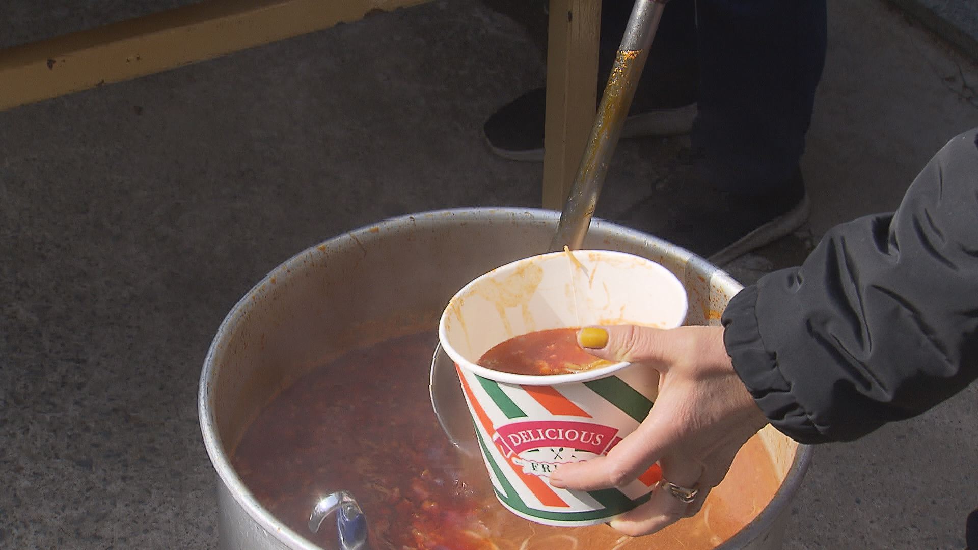 돼지고기 수육과 소고기국밥 100인분이 차려졌는데요.