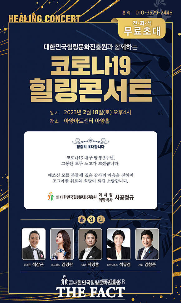 대구에서 코로나 19가 발생한 지 3년째인 2월 18일 대구시민을 위한 무료 공연 '코로나19 힐링 콘서트'가 오후 4시 아양아트센터에서 열립니다.