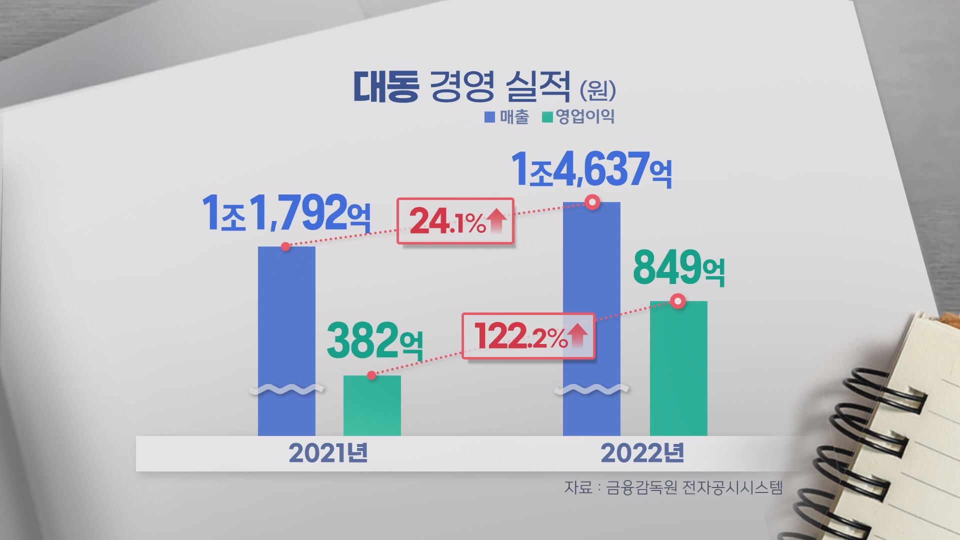 매출의 65%를 수출한 대동은 2022년 연결기준 매출 1조 4,637억 원을 달성해 전년보다 24%가 증가해 역대 최대 기록을 세웠습니다.
