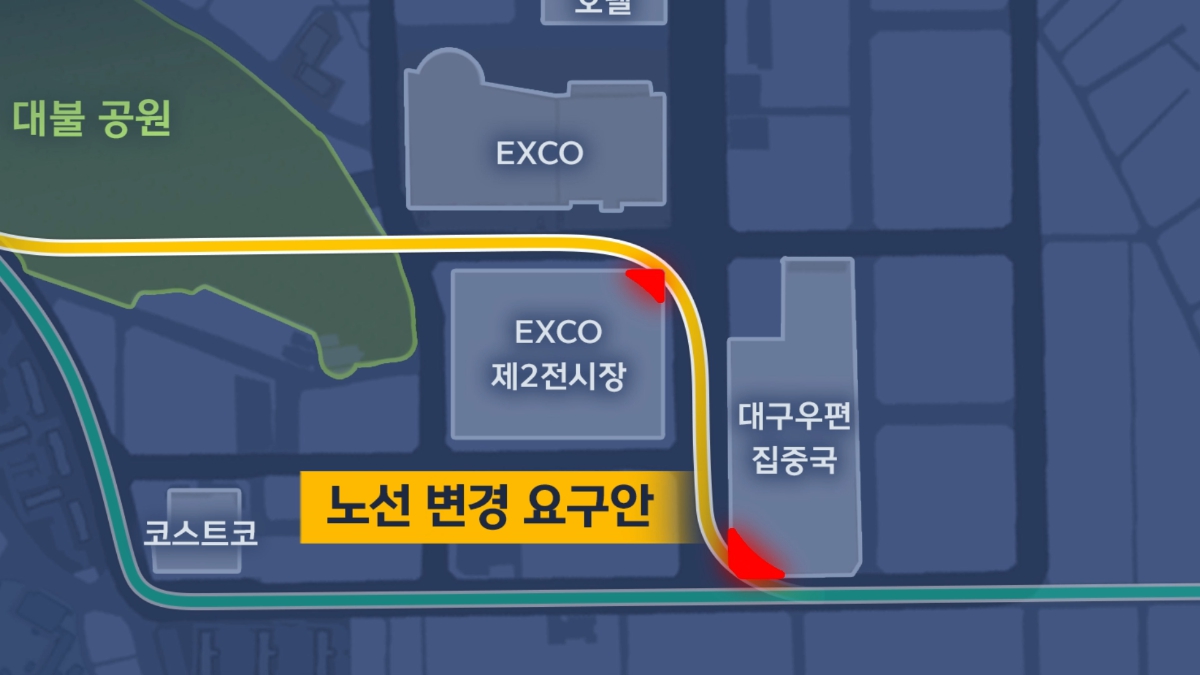 유통단지 상인회, 주민자치기구 등을 중심으로 엑스코, 유통단지 활성화 취지가 무색하다며 노선 변경을 요구하고 있습니다.