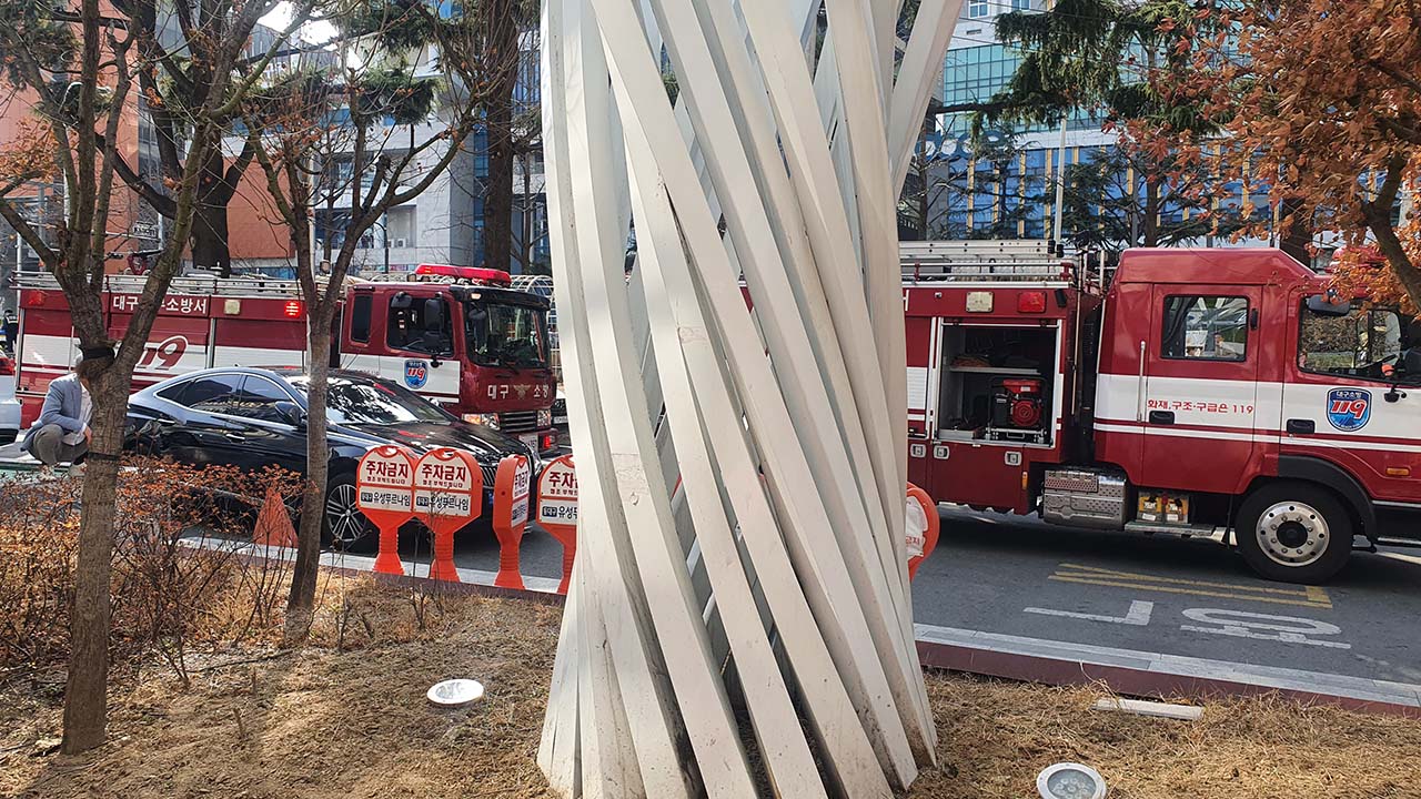 "이 사람이 또 갑자기 또 과격하게 불을 붙일까 봐 저쪽에 가서 숨어서 신고하고 나는 이 사람 잡고 있었지. 잡고 있으면서 여기서 한참 이야기를 했어요."