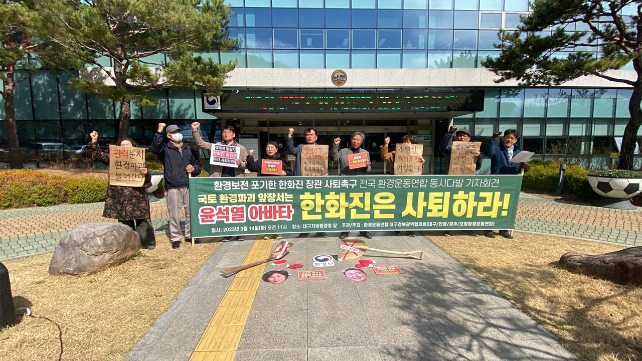 환경운동연합 대구 경북 광역협의회는 3월 14일 대구지방환경청 앞에서 기자회견을 열고 한화진 환경부 장관 사퇴를 촉구했습니다.