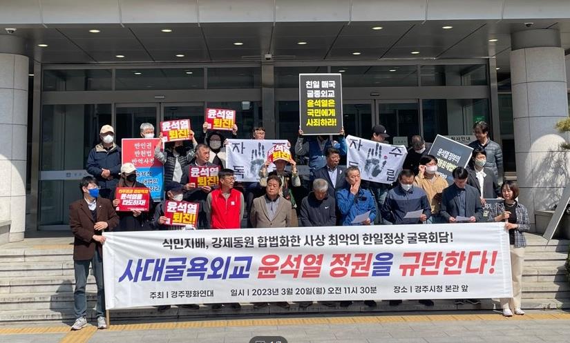경주 6개 시민단체 연합인 경주 평화연대는 3월 20일 기자회견을 열고 윤석열 대통령이 일본과의 굴욕적인 외교로 국민을 치욕스럽게 했다고 비판했습니다.