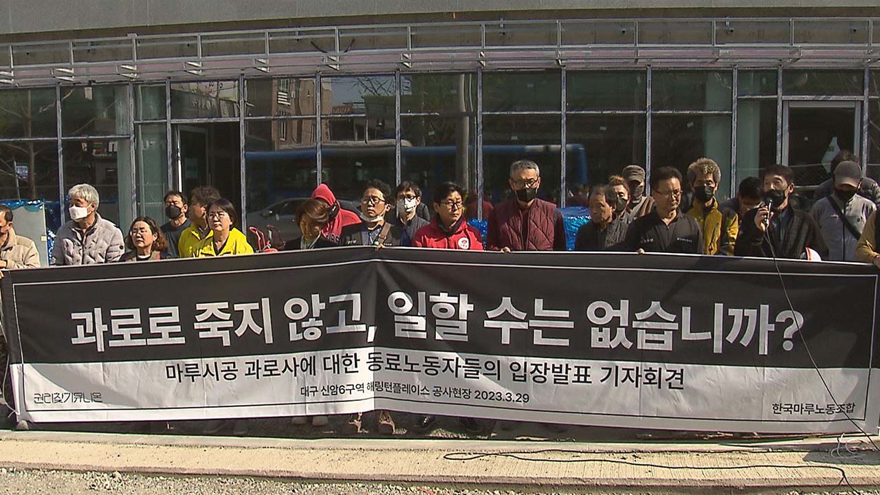 노조는 일주일 내내 쉬는 날 없이 하루 13시간, 일주일에 80시간 이상 일하고도 건강검진 서류에는 하루 8시간 일한 것으로 기재돼 있는 등 불법 하도급과 과로 때문이라며 경찰과 노동청에 진상규명과 대책을 요구했습니다.