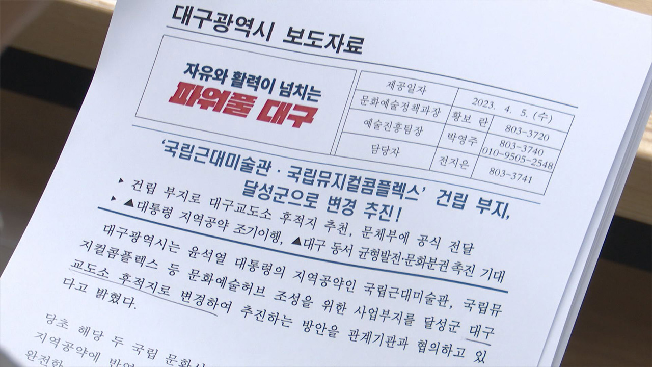 문화체육관광부가 주관하는 사업이기 때문에 대구시가 문화체육관광부에 최근 부지 변경을 요청했고요.