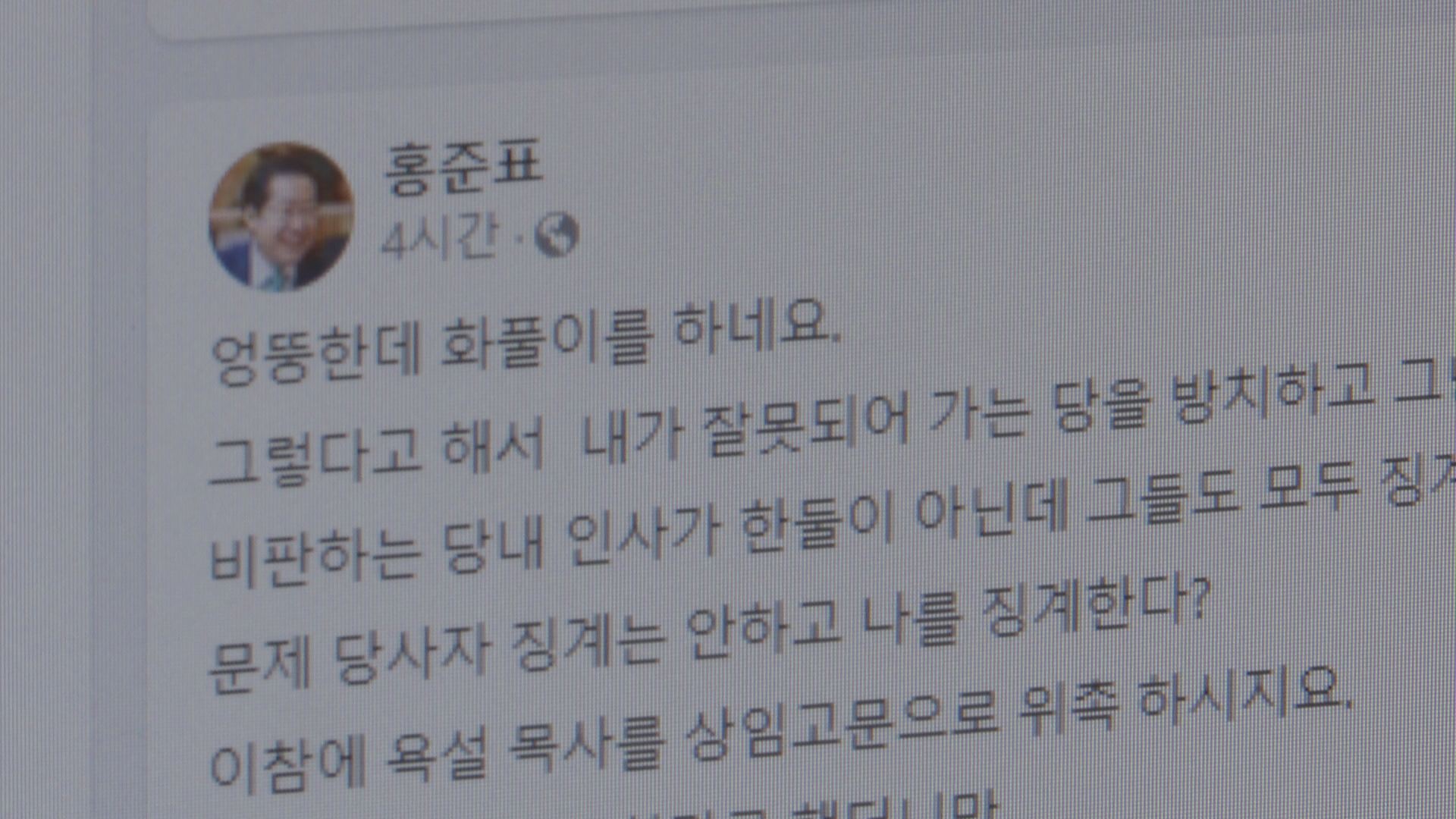 그렇지만 홍 시장에 더 이상 중앙정치에 간섭하지 말라는 강력한 메시지로 보입니다.
