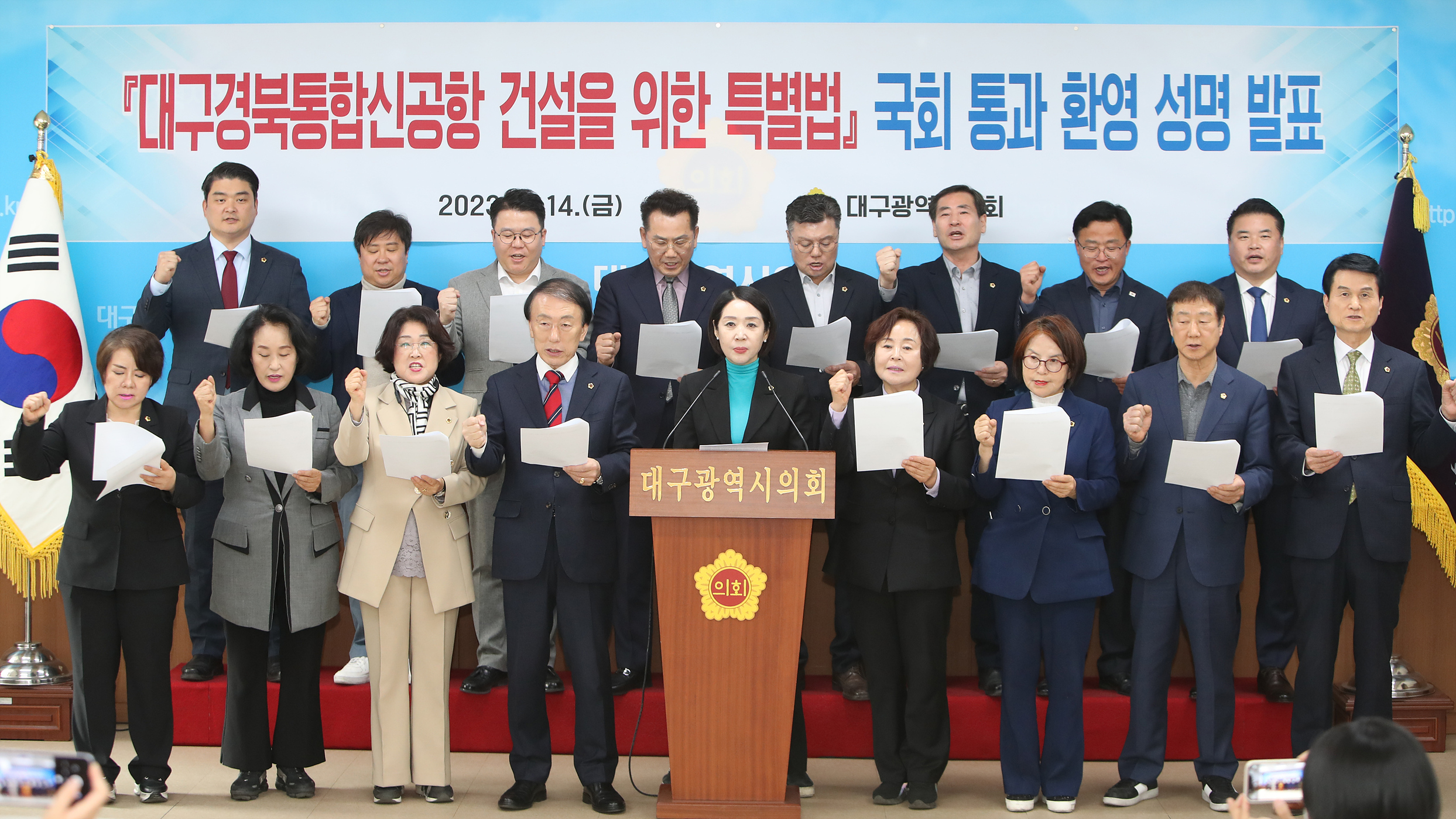 대구시의회가 대구경북신공항 특별법 국회 통과를 환영하는 성명을 발표했습니다.