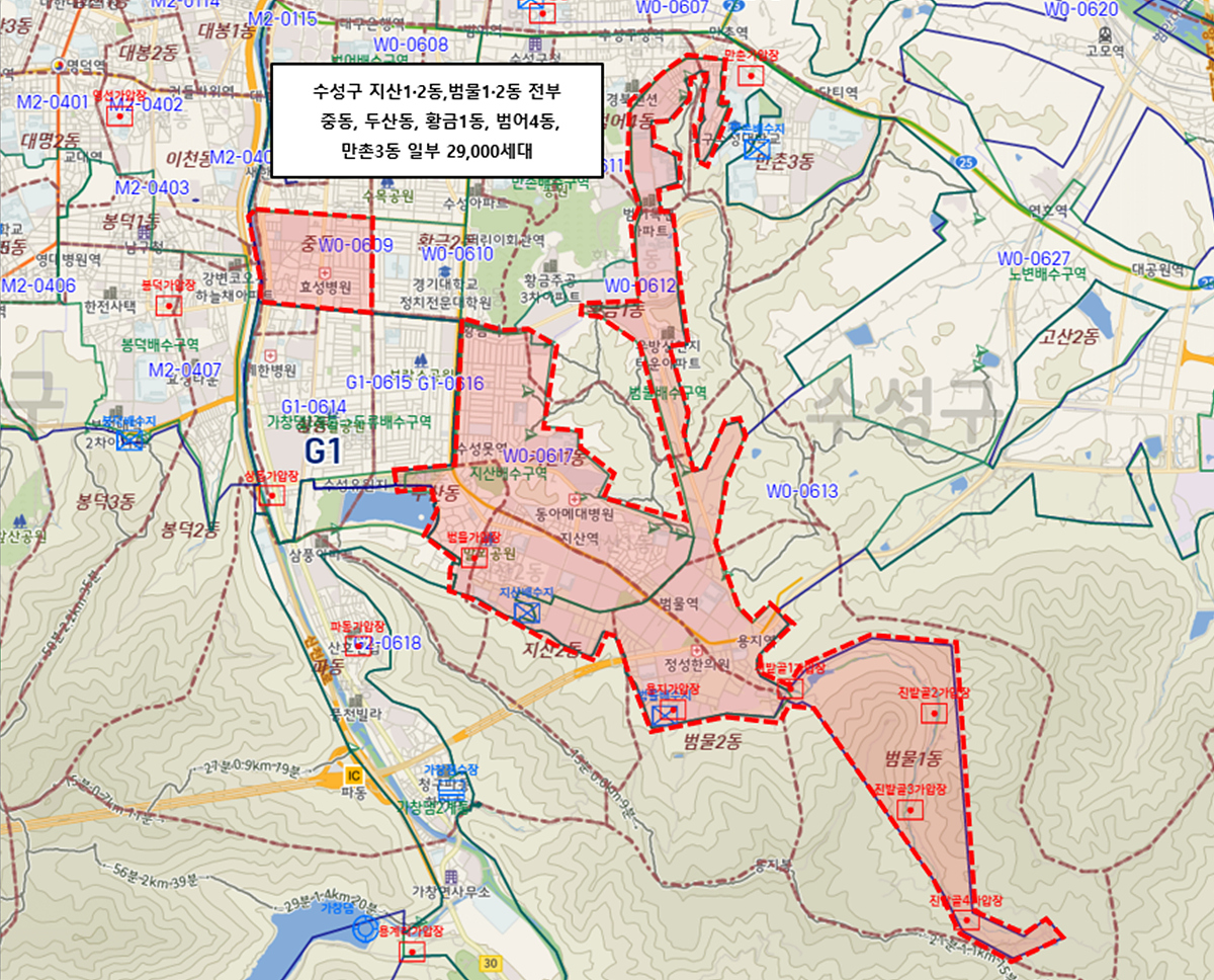 이에 따라 범물동과 중동, 황금동, 만촌동 일부 29,000세대가량에 흐린 수돗물이 예상돼 물을 미리 받아 두는 등 준비가 필요합니다.