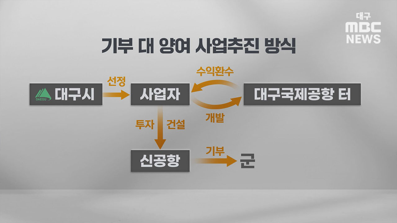 또 다른 우려는 정산 문제입니다. 가덕신공항이 완공 예정인 2029년까지 정부의 국비 지원은 재정 사업인 부산 가덕도 공항으로 갈 것이고, 대구경북신공항은 주로 군부대 이전 방식인 기부 대 양여로 추진됩니다. 그래서 정부 지원이나 정산은 공항 개항 뒤인 2031년 후로 밀릴 것이고, 결국 나중에 정산 문제가 발생할 수 있다는 말이 나오는 이유이기도 합니다.