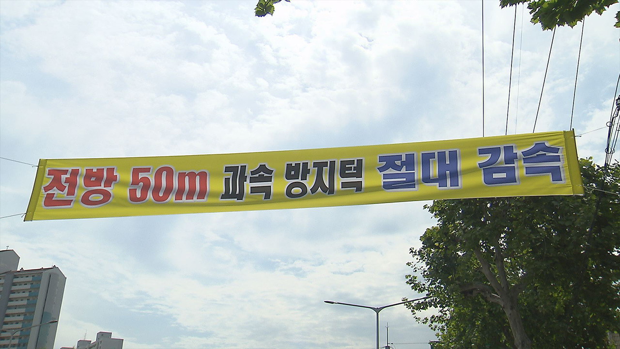 전방 50m 앞에 과속 방지턱이 있으니 절대 감속하라는 내용의 현수막도 걸렸습니다.