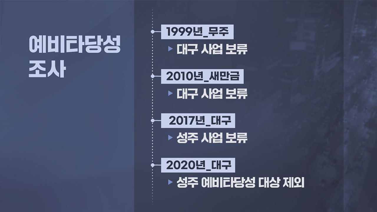 성주군은 지난 2020년에도 같은 사업을 다시 신청했지만, 예비타당성 조사 대상에서조차 제외되는 수모를 당했습니다.