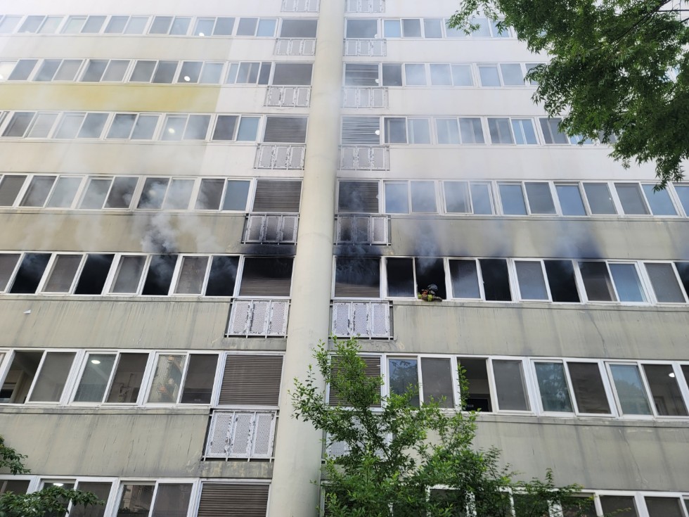 소방당국은 아파트에서 검은 연기가 난다는 신고를 받고 소방 인력 41명과 소방차량 등 17대가 출동해 오전 9시 51분쯤 불을 껐다고 밝혔습니다.