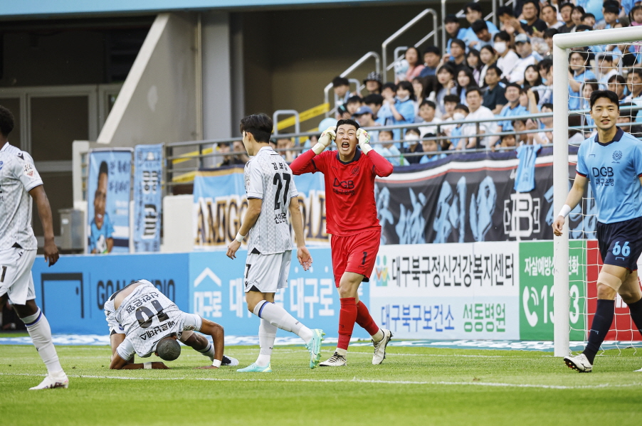 시즌 5승을 기록 중이던 대구는 무실점이 아닌 경기로는 이번 시즌 처음이자 승리이자, 아울러 첫 역전승까지 기대했지만, 경기 종료 직전 후반 추가 시간 인천 홍시후에게 통한의 동점 골을 내주며 실패, 결국 2대 2로 경기를 마무리하며 승점 1점을 추가하는데 만족해야 했습니다.