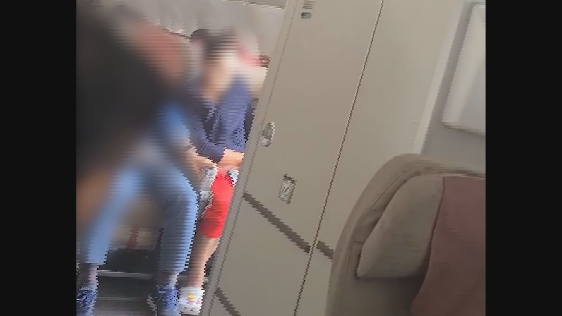 해당 사진은 비행기가 움직이던 상황이 아니라 완전히 멈추고, 탑승교가 연결돼 승객들이 내릴 때인데, 승무원이 비상구로 가지 못하도록 한 거란 겁니다.