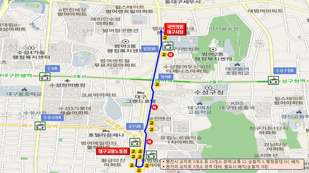 대구경찰청에 따르면 민주노총 금속노조 대구지부는 31일 오후 2부터 대구 수성구 범어동 대구지방고용노동청 앞에서 대정부 '총력 투쟁 결의대회'를 열고 노동청에서 범어네거리를 지나 국민의힘 대구시당 앞까지 1.8km를 행진합니다.