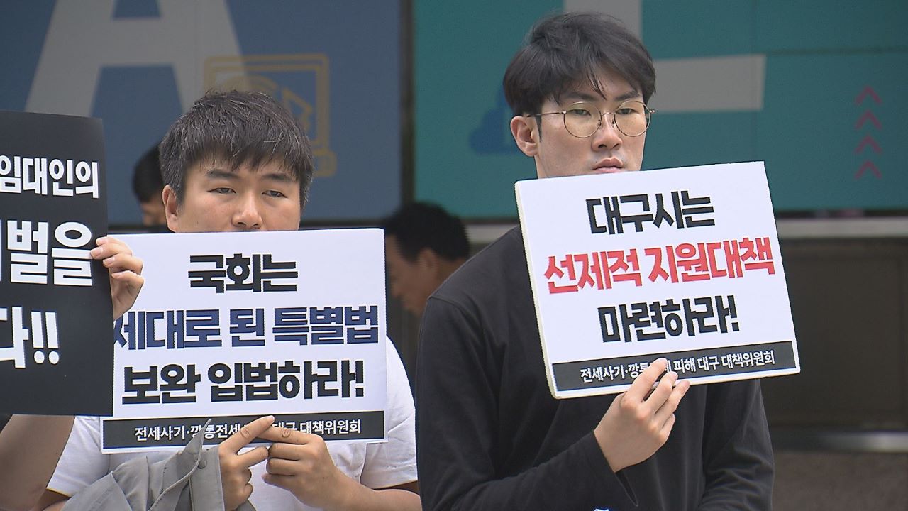 전세 사기·깡통전세 피해 대구 대책위원회는 대구시가 즉각적인 피해 실태 조사에 나서는 한편 전세피해지원센터 설치와 선제적인 지원 대책을 마련하라고 촉구했습니다.