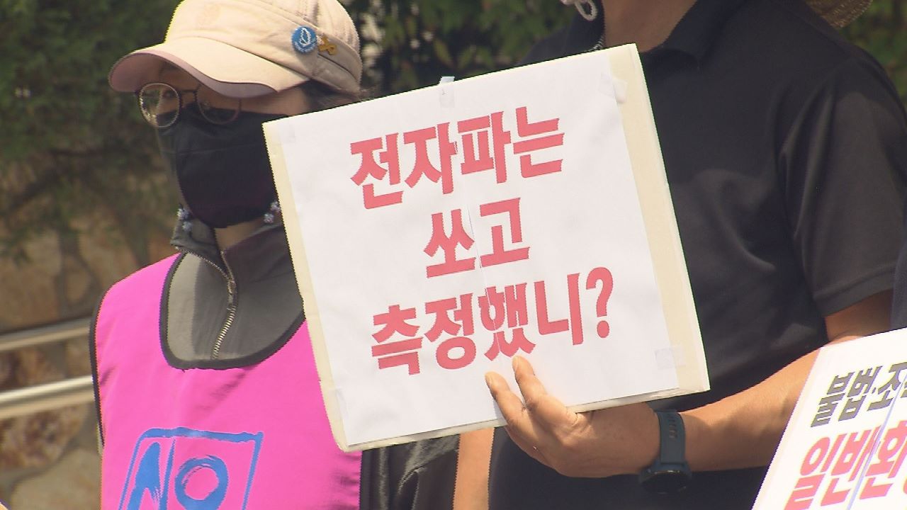아직 시범 운영 중이고 7월부터 주민들이 전자파 수치를 언제든지 확인할 수 있도록 운영하겠다는 계획인데, 주민들은 환경영향평가가 끝나고 난 뒤라 소용없다고 반발했습니다.