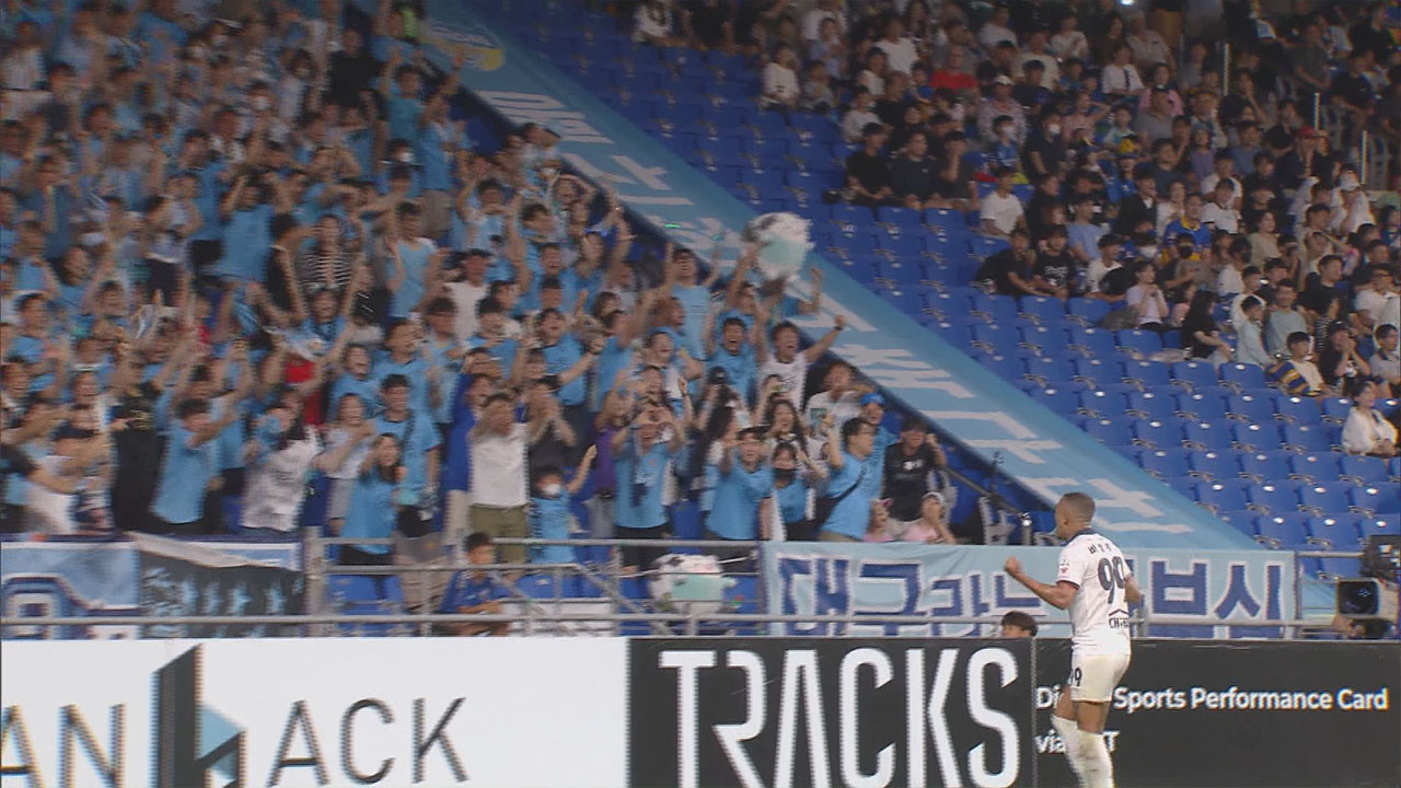 이런 분위기는 경기장에서도 거침없이 드러납니다. 대팍보다 더 크고 뜨거운 함성으로 대구FC의 응원가를 부르는 대구의 서포터즈는 상대에 비해 10%에 불과한 숫자지만 소리의 크기는 비등했고, 선수들에겐 분명 큰 힘이자, 무거운 책임감, 그리고 경기에 대한 열정으로 돌아옵니다.