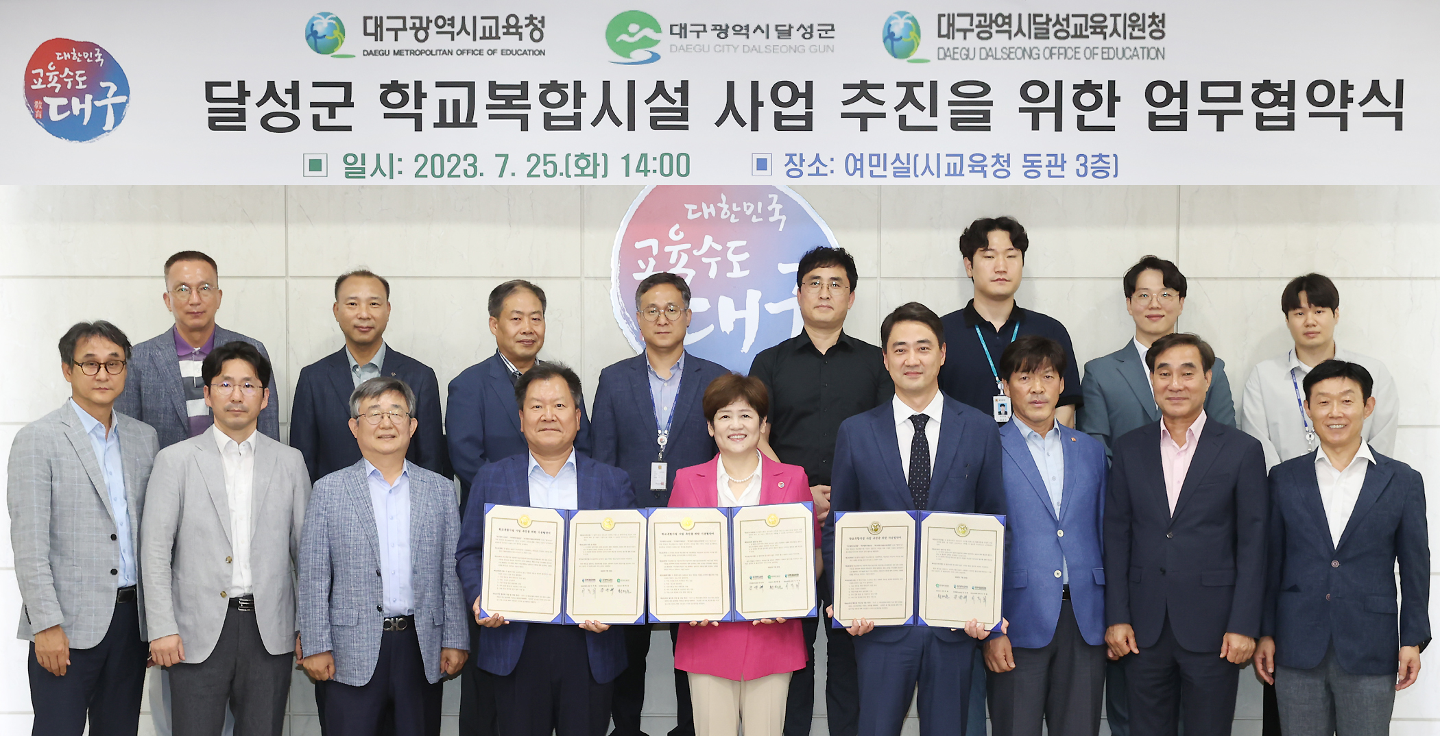대구시교육청은 달성군과 학교복합시설 사업 추진을 위한 업무협약을 체결했습니다.