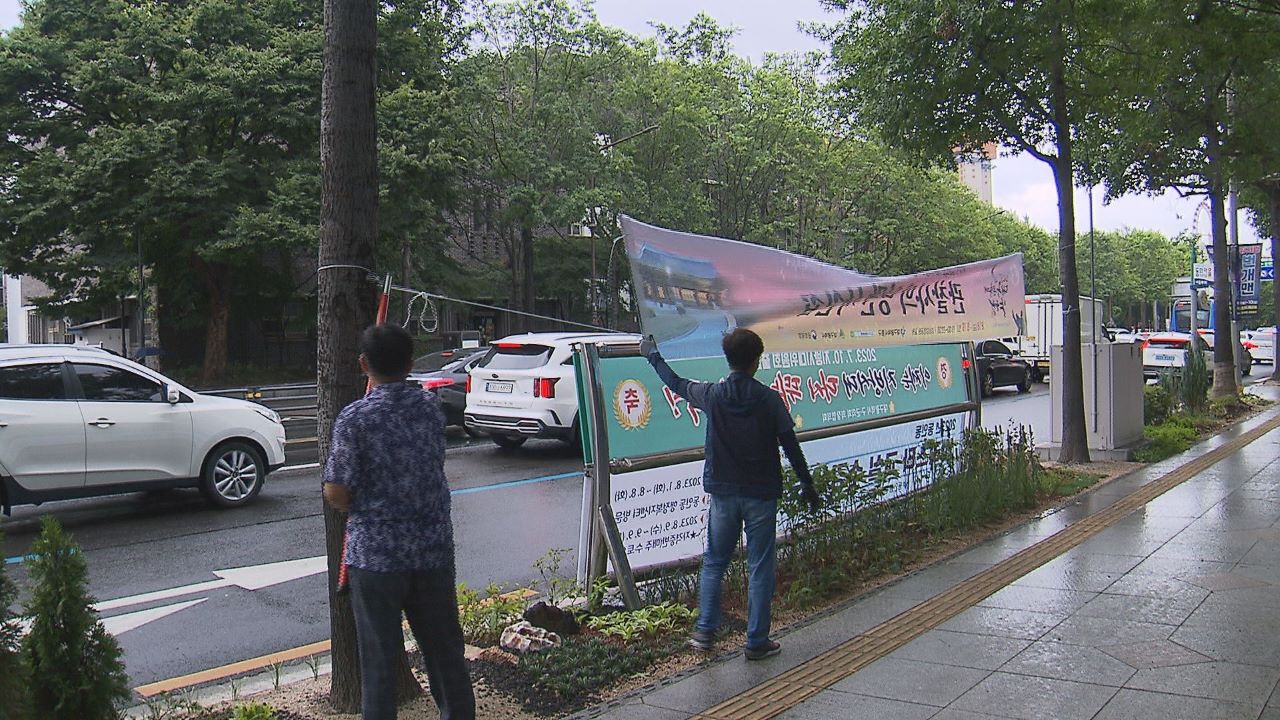 이렇게 점검반이 나서도 건물 외벽에 끈으로만 위태롭게 걸려 있는 불법 현수막은 끝이 없습니다.