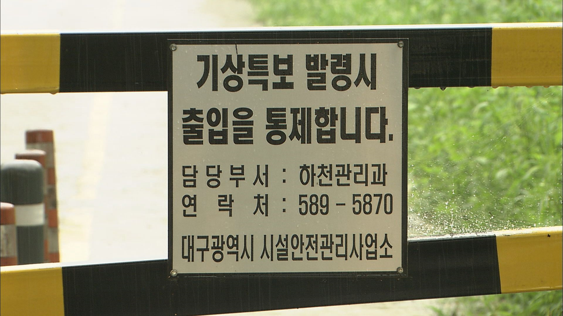 대구 동구는 호우주의보가 발효됨에 따라 침수 우려가 있는 5곳의 통행을 통제했습니다.