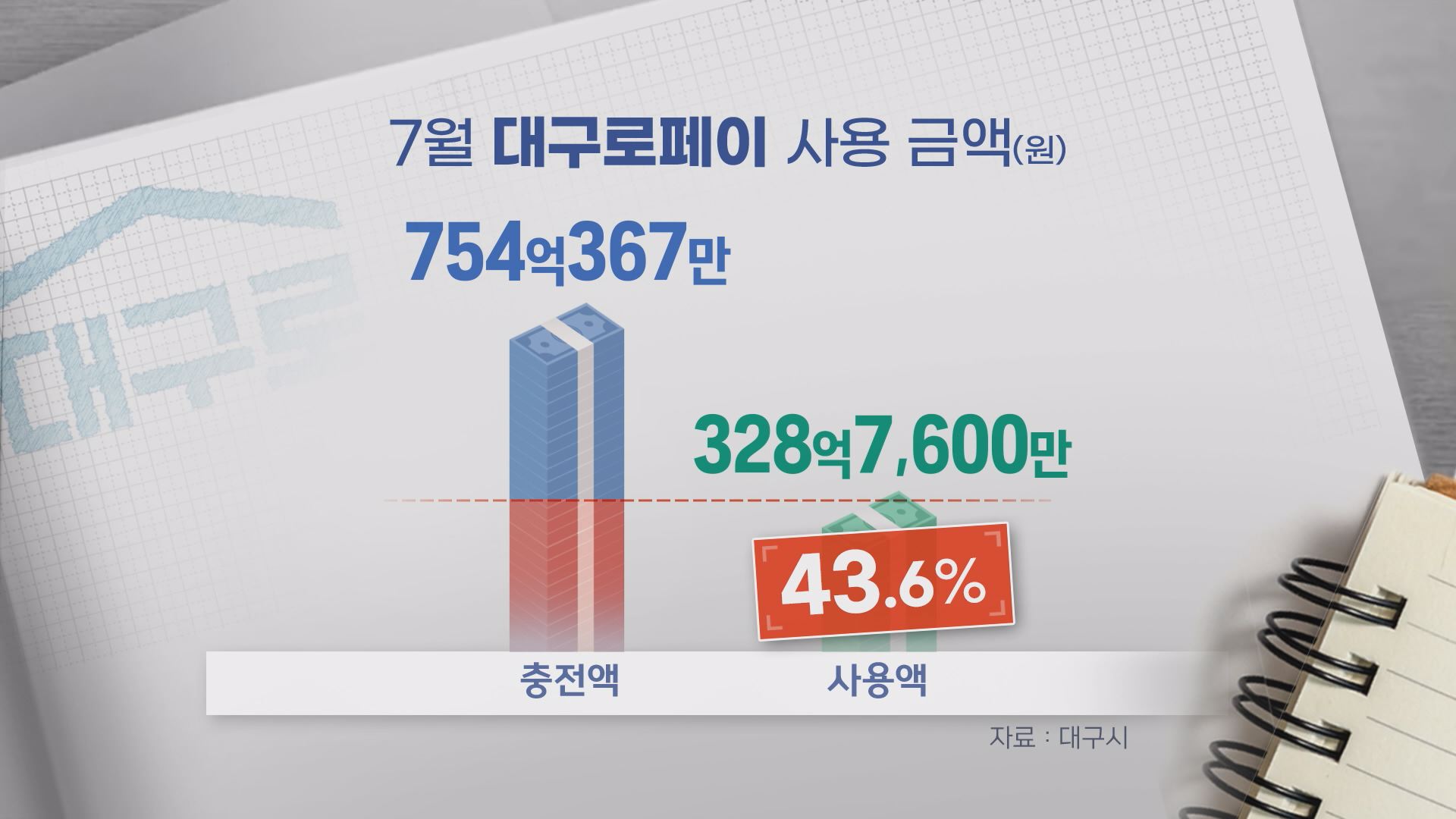 대구시에 따르면 대구로페이로 전환한 7월 3일부터 7월 한 달간 사용 금액은 328억 7,600만 원으로 충전 금액의 43.6%에 그쳤습니다.