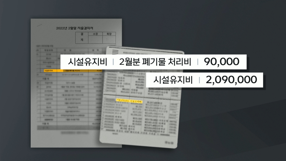 전 동 대표 회장 "지출 결의서랑 출금 전표랑 제게 똑같은 금액으로 (가지고 와서) 결제를 해주고 난 뒤에 은행 가기 전에 거기다가 추가로 글자를 몇 자 더 기입해가지고 그렇게 횡령한 겁니다."
