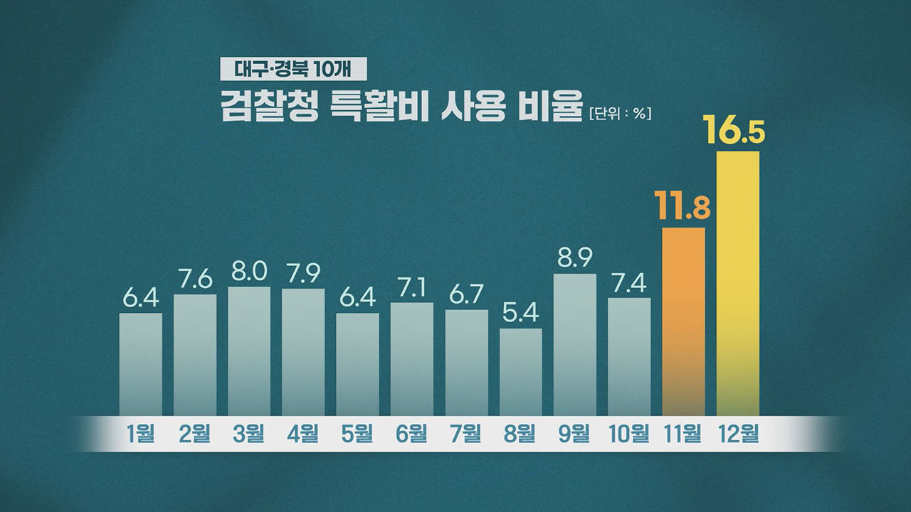 특활비 집행 현황을 보면, 연말에 많은 돈이 나가는 현상이 눈에 띕니다. 시민단체는 11월과 12월에 특활비 집행이 몰리는 것을 두고 '연말 돈 잔치'라는 말까지 하고 있습니다. 대구·경북 10개 검찰청의 2017년부터 2023년까지 69개월 특수활동비 집행 현황을 보면, 대구·경북에선 어느 검찰청을 가리지 않고 연말에 많은 돈이 나갔습니다. 검찰 주장대로면 대구경북 검찰청에선 2017년부터 2023년까지 연말에 기밀 수사가 몰렸다는 의미가 됩니다.