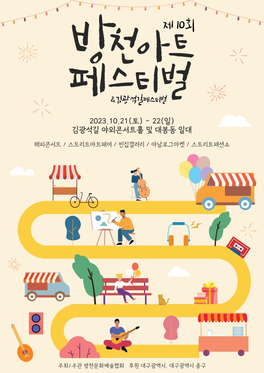 '제10회 방천아트페스티벌'이 10월 21일과 2일 이틀 동안 김광석길과 대봉동 일대에서 열립니다.