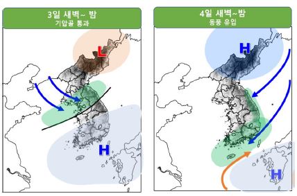특히 대기 상층에는 북쪽에서 찬 공기가 내려오고 대기 하층에는 습윤한 공기가 유입되며 중국내륙에서 발달한 저기압이 한반도를 통과해 5일과 6일에는 강하고 많은 양의 비가 내릴 가능성이 있겠습니다.