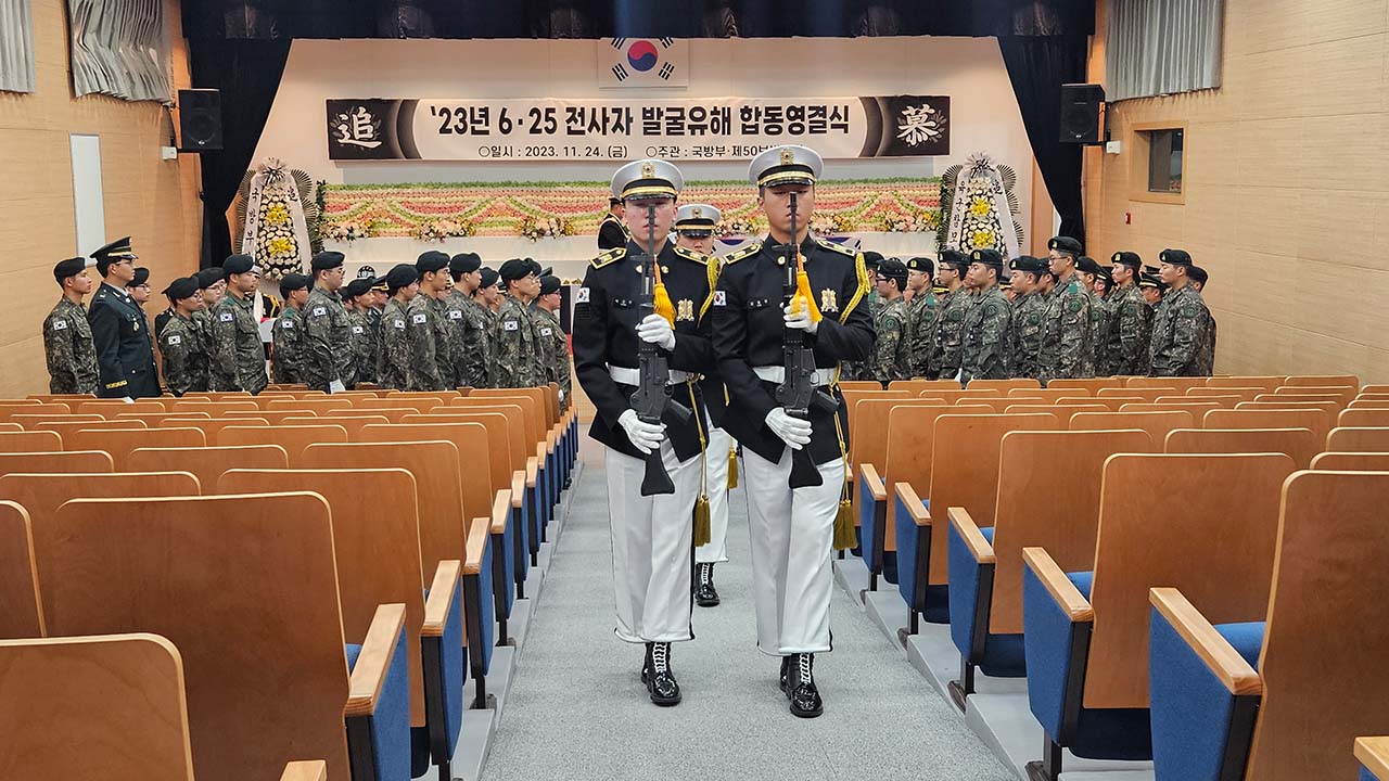 육군 50보병사단은 11월 24일 영천호국원에서 6.25 전사자 발굴 유해 합동 영결식을 거행했습니다.
