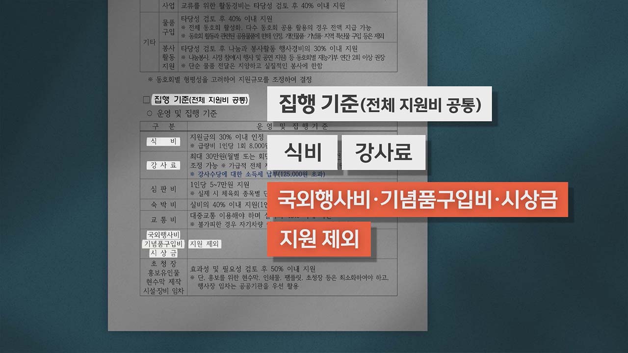 2022년 문건을 보면, '지원금을 지원 취지에 적합하게 사용하도록 유도'해야 하고, '민간 단체 보조금 지원 규정 수준을 준수'하도록 해야 한다는 것이 지원의 기본 방향입니다. 정부는 민간 단체에 지급하는 보조금의 경우 ▲자본적 경비 ▲일반운영비 ▲현금성 지출 경비 등으로 쓰지 못하도록 정해두고 있고, 시상금 등은 현금성 지출 경비에 해당합니다.