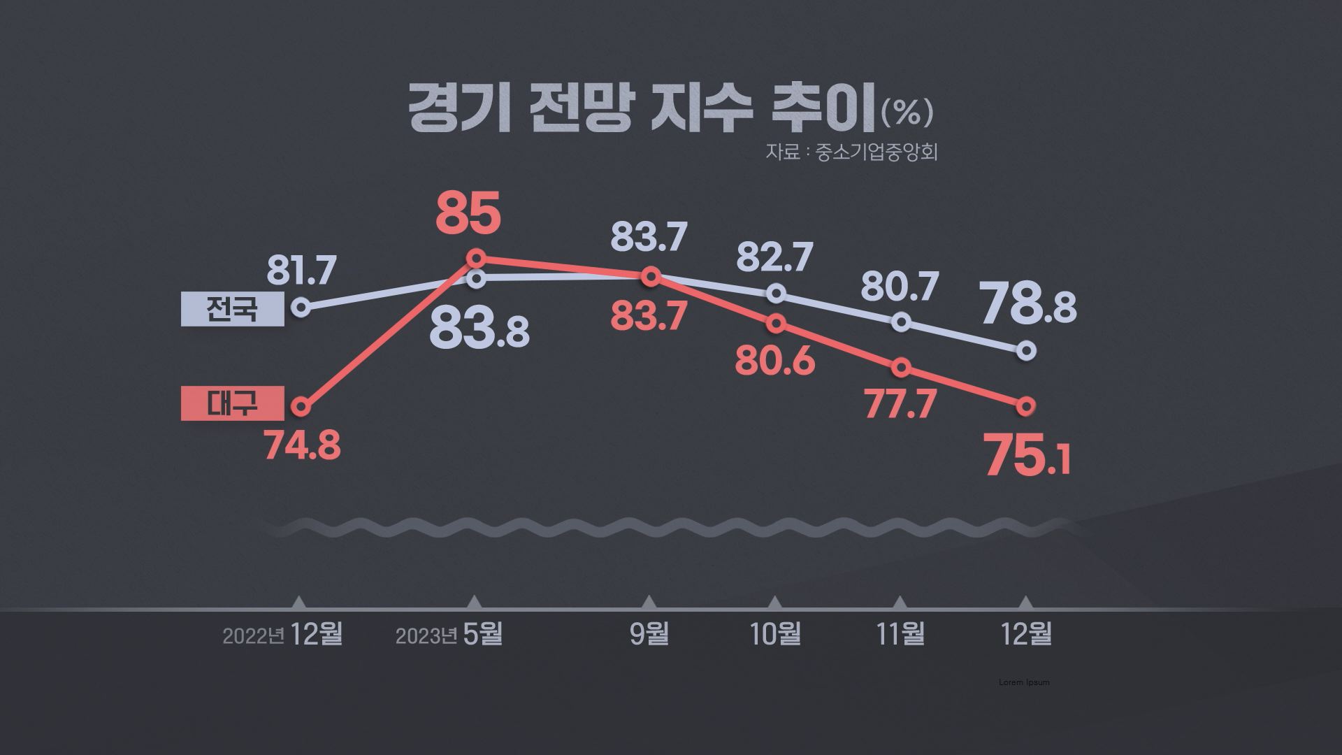 중소기업 중앙회 대구지역본부의 경기 전망 지수를 보면 2023년 5월 최고점을 찍은 뒤 석 달 연속 하락세입니다.