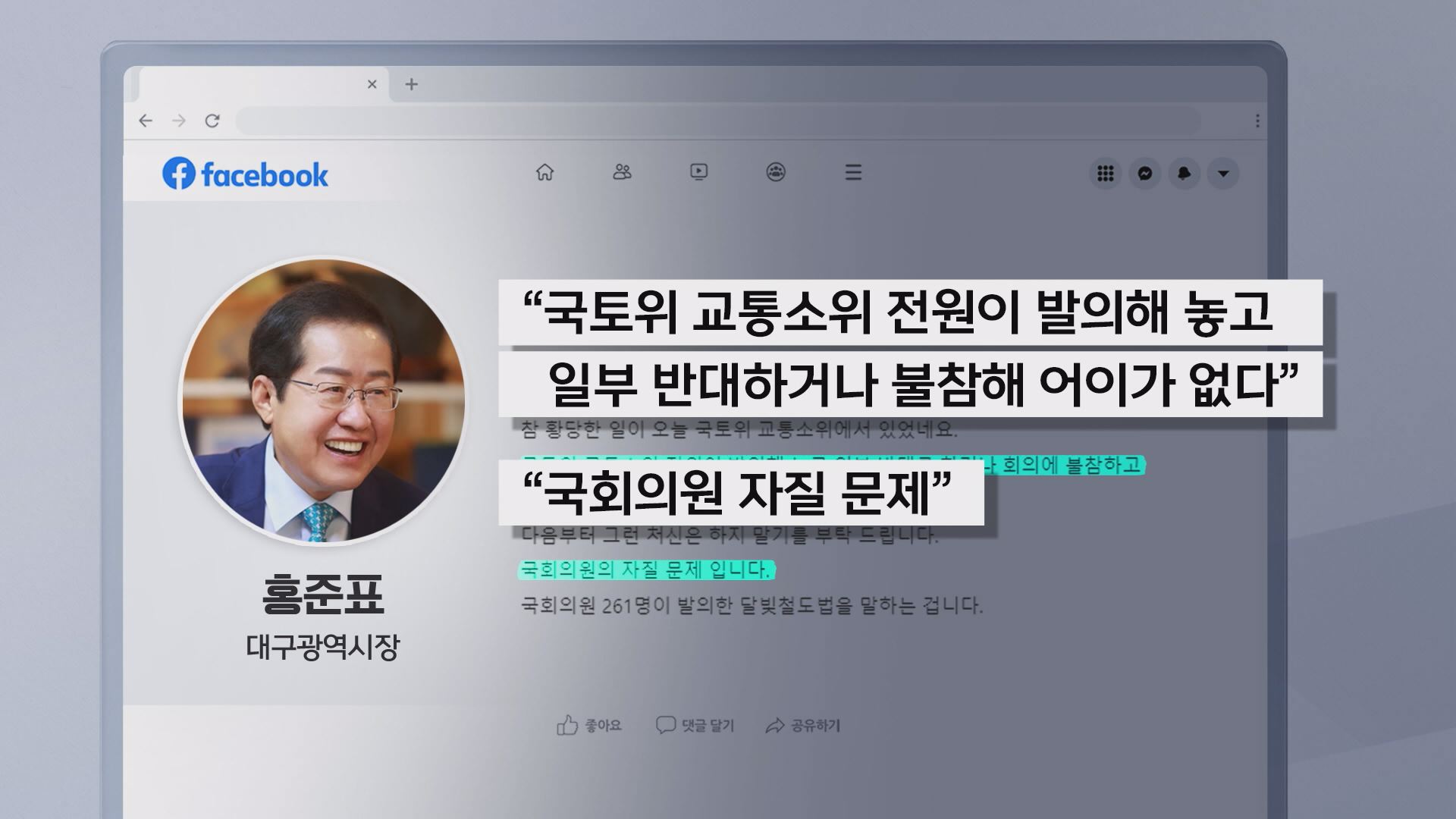 홍준표 대구시장은 12월 5일 자신의 SNS에 반대 의견을 낸 의원들을 비판했습니다.