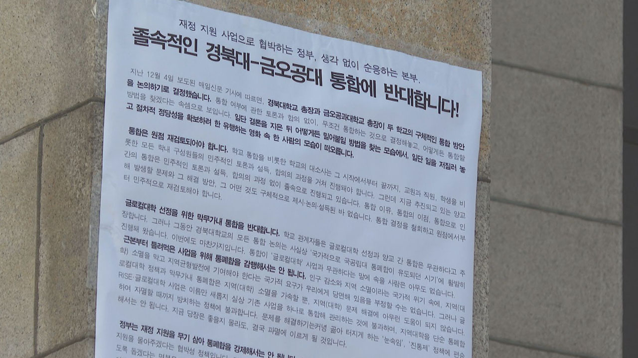 경북대와 금오공대 통합 추진 소식이 나오면서 경북대 학생들의 반발이 점점 커지고 있습니다.