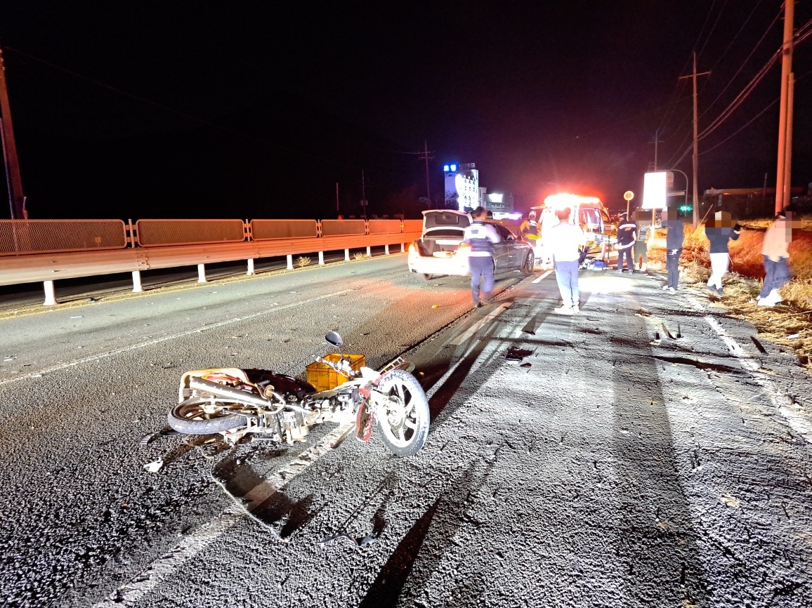 12월 9일 오후 7시 33분쯤 경북 경주시 안강읍의 한 왕복 4차선 국도에서 역주행하던 오토바이가 마주 오던 차량과 충돌했습니다.