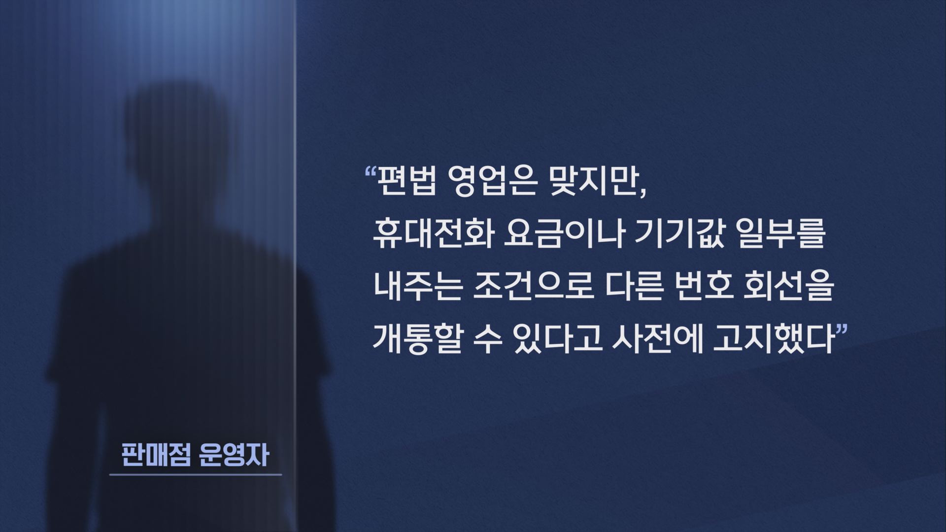 이에 대해 판매점 측은 "편법 영업은 맞지만, 휴대전화 요금이나 기깃값 일부를 내주는 조건으로 다른 번호 회선을 개통할 수 있다고 사전에 고지했다"고 주장했습니다.