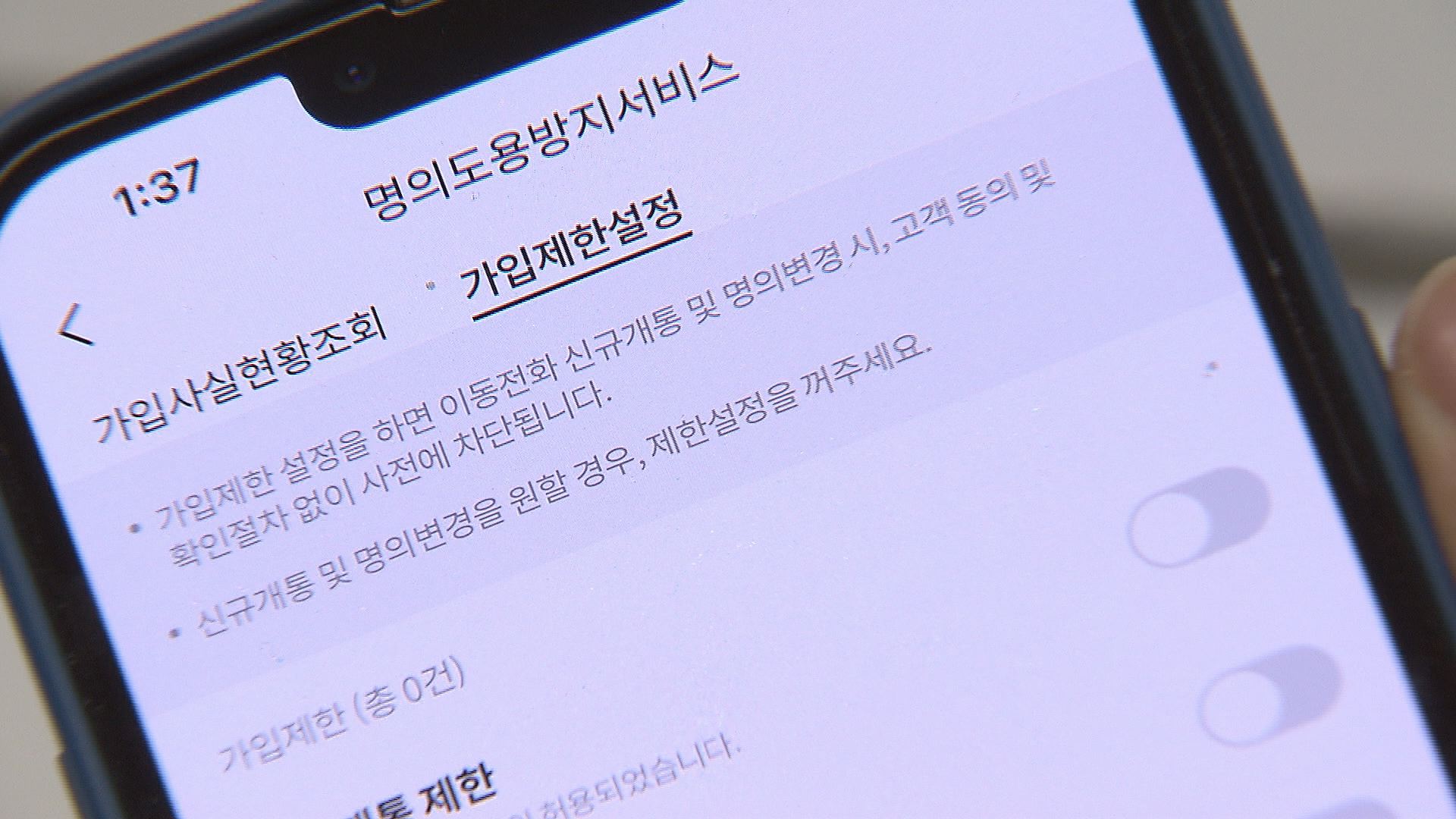 가입 제한 설정으로 명의도용 사전 예방