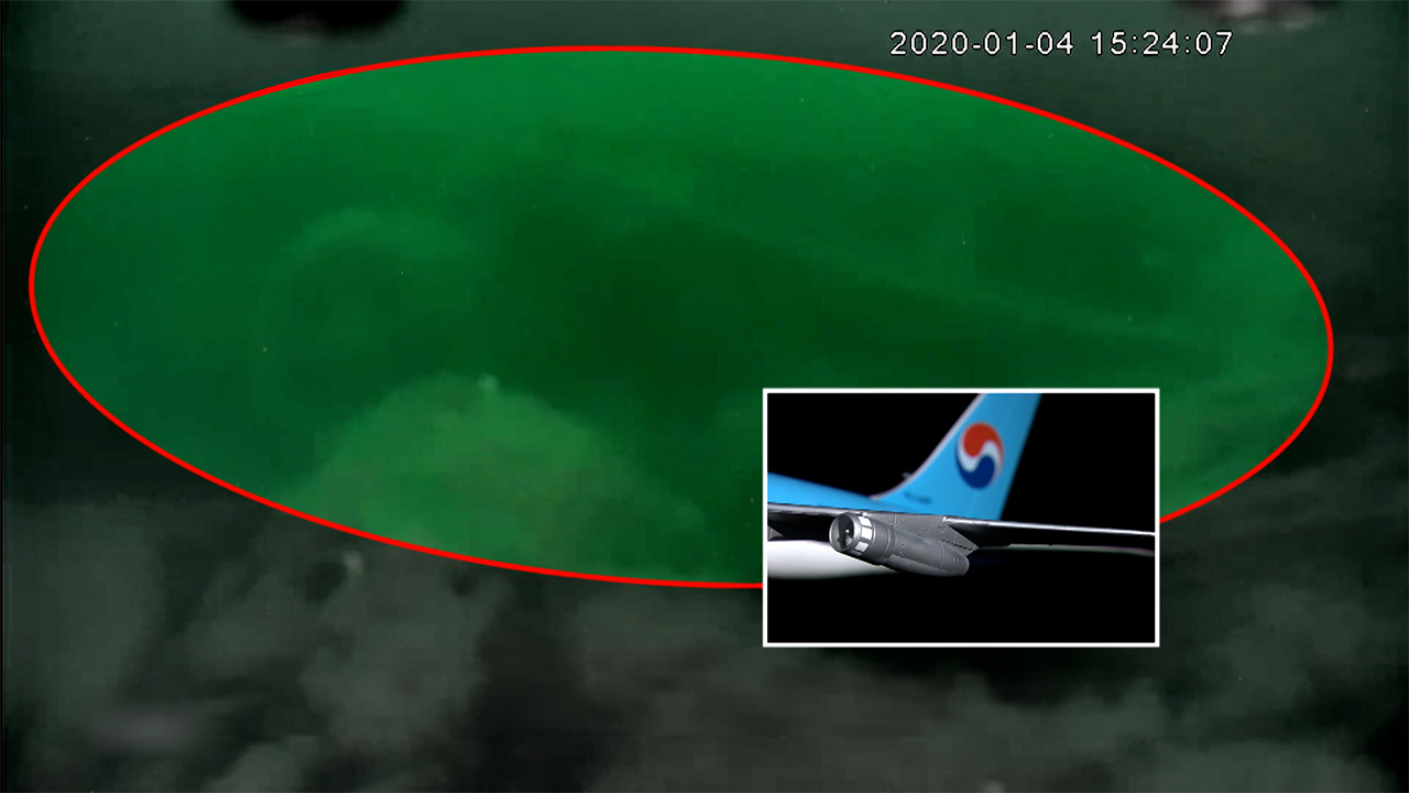 2020년 1월 4일 대구MBC 특별취재단이 미얀마 안다만 50미터 해저에서 촬영한 KAL 858기 추정 동체를 보면 비행기 날개에 붙어 있는 엔진의 모습을 또렷이 확인할 수 있습니다.