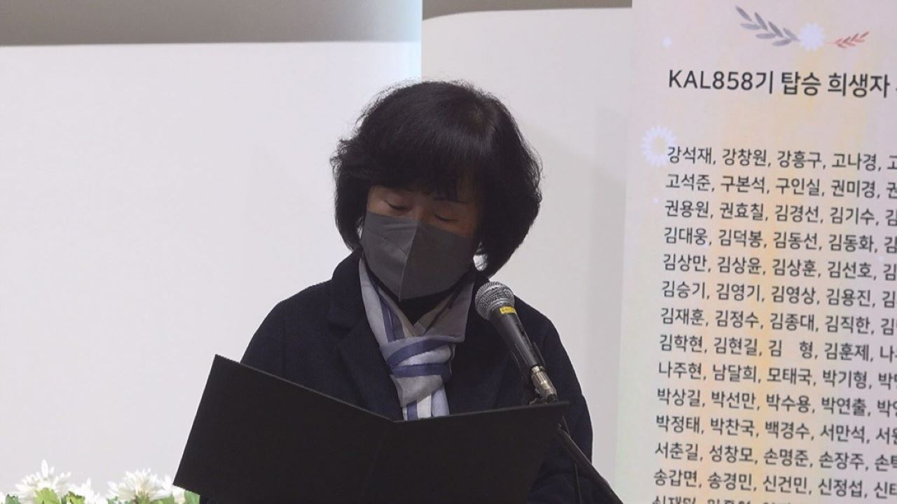 유인자 KAL 858기 유족회 부회장은 "기획재정부는 미얀마 수색이 가능해지는 즉시 예비비로 수색 비용이 책정되도록 사전에 모든 준비를 해 주시기를 바랍니다."라고 윤석열 정부에 호소했습니다.