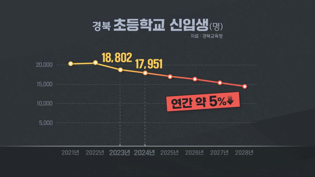 그러다 2017년에는 15,000명대, 2028년에는 14,000명대로 뚝뚝 떨어질 것이란 게 경북교육청의 전망입니다.