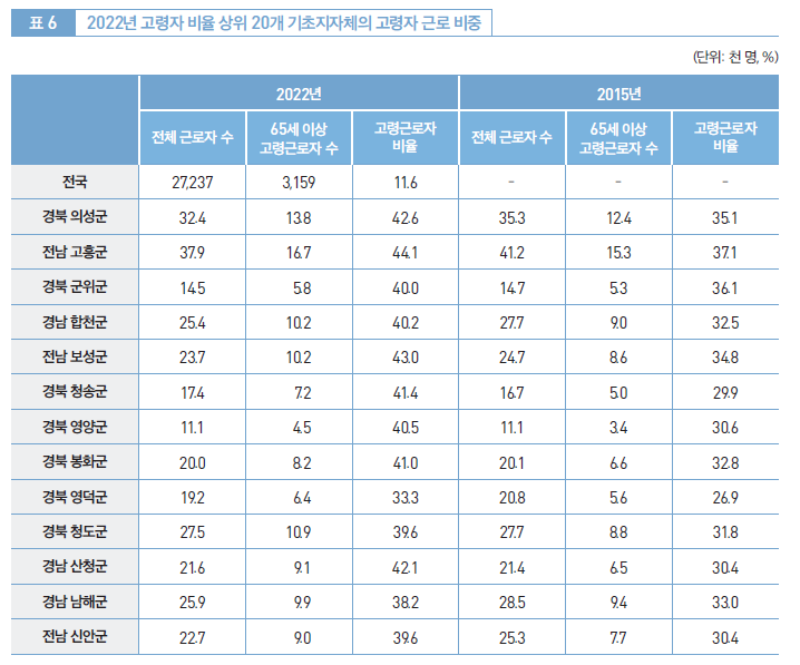 (자료 출처 한국고용정보원 <지역별 고령화와 고령층 노동시장 현황>)